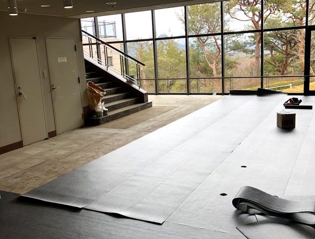 神戸市北区のゴルフ場のロッカールームとエントランスの床張替え工事を行いました。
