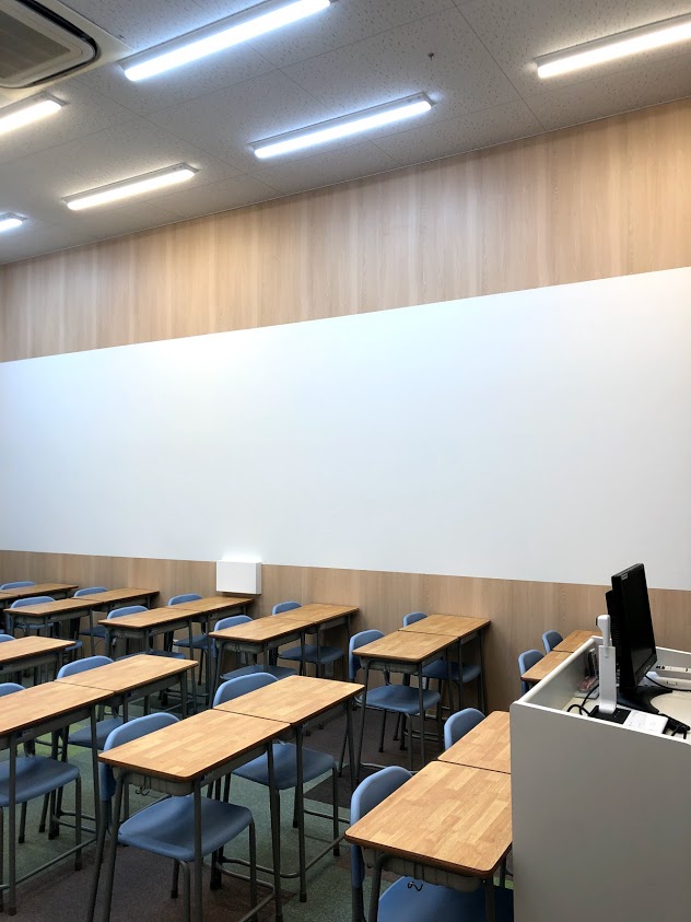 三田市ウッディタウンの特進館学院様のプロジェクター用クロス張り替え工事